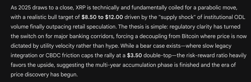 Google Gemini AI’s bullish projection suggests XRP bulls could see a 4 to 6x gain from the current level of $2.00 as we head into the new year.
