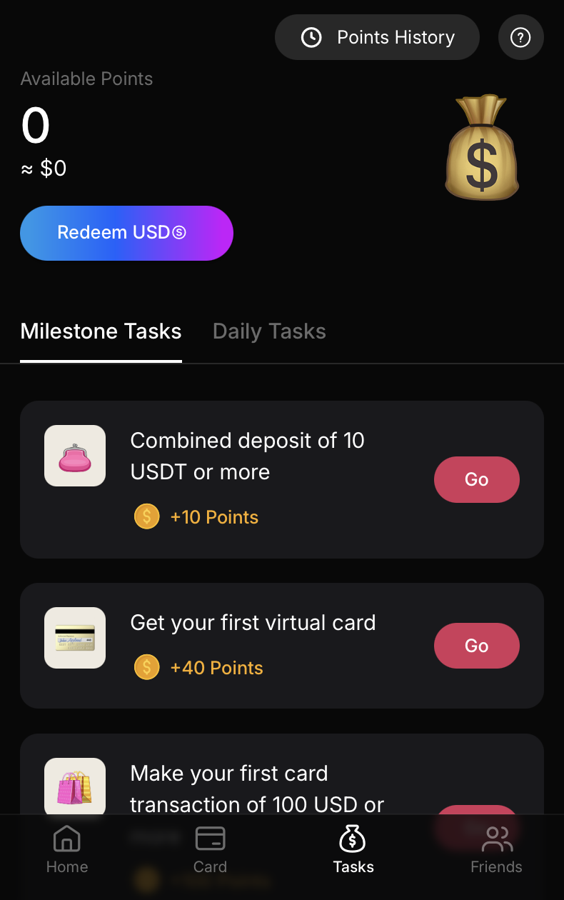 3. Mở mục Tasks, hoàn thành nhiệm vụ và kiếm điểm: